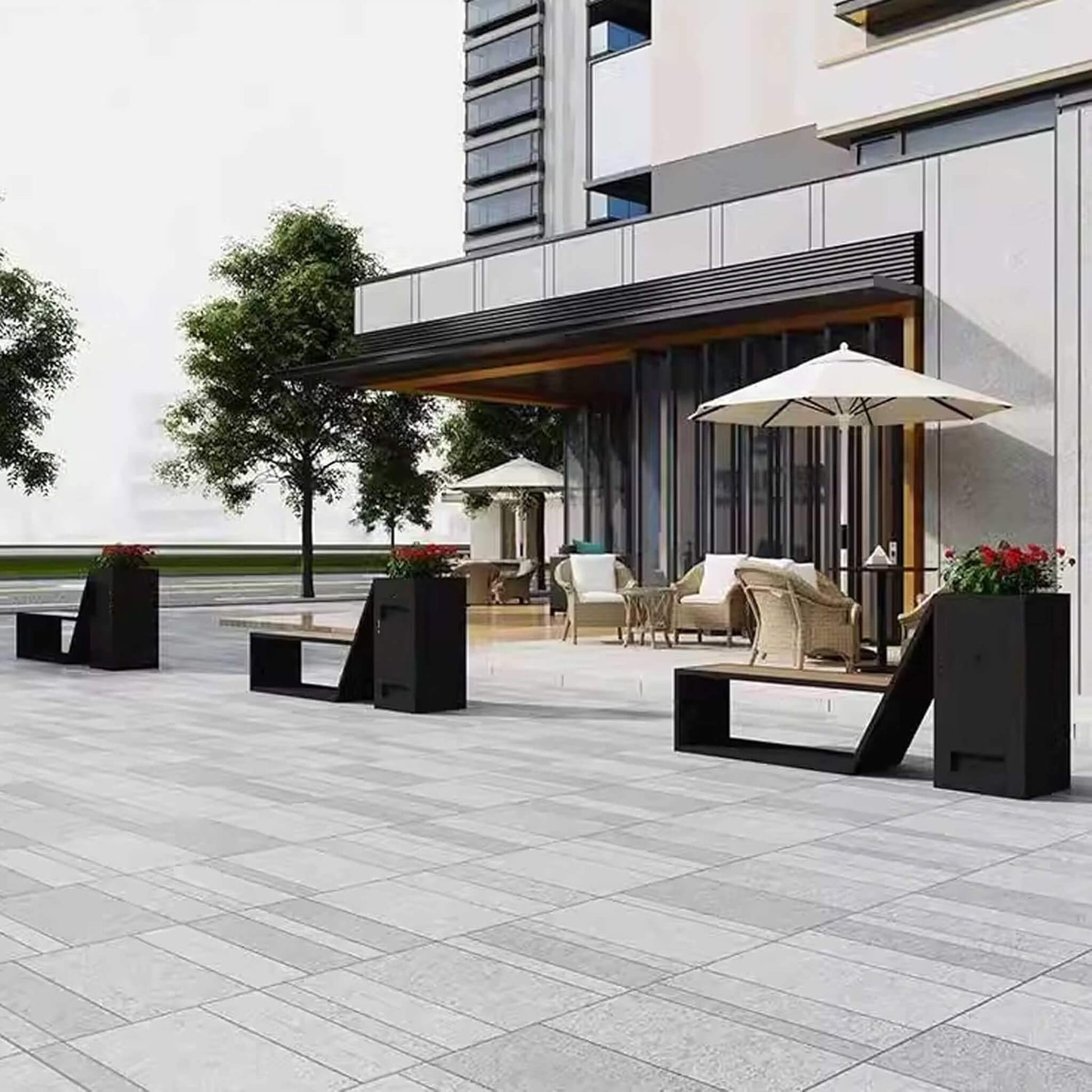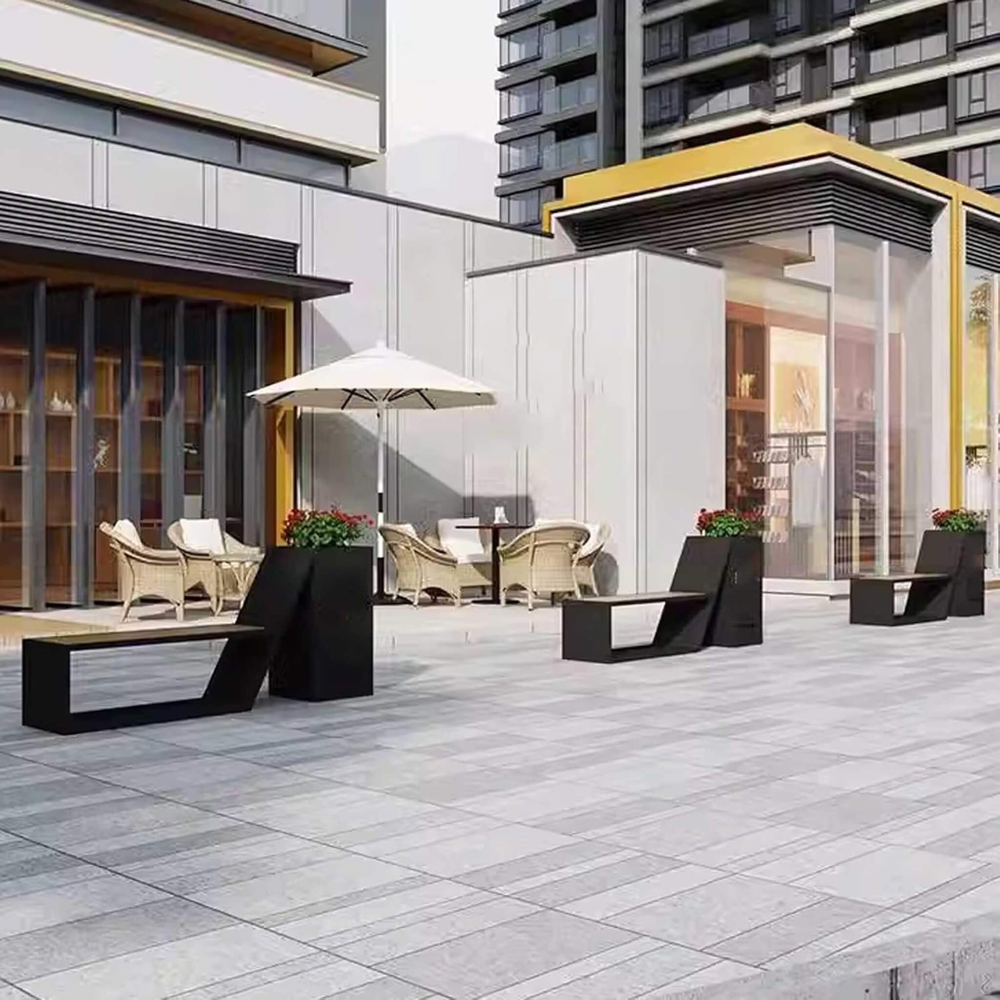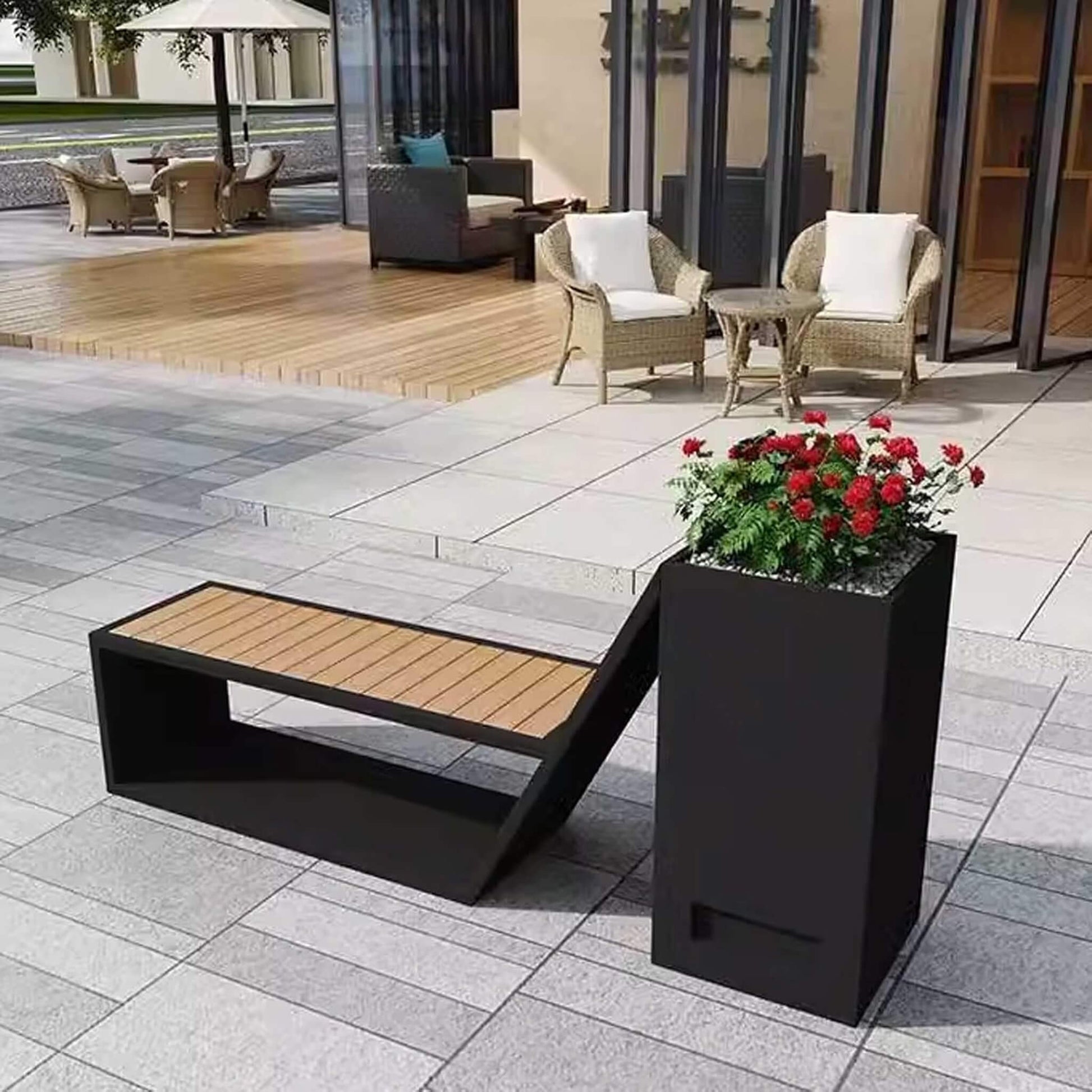 Forget about flimsy furniture that fades after one season. This bench is engineered for serious longevity and performance! Constructed from high-quality galvanized sheet metal with a paint jet steel finish, it stands strong against the elements year-round. Whether facing baking sun or heavy rain, the weather-resistant build ensures your bench maintains its sleek, modern black aesthetic without constant maintenance, making it a reliable investment for any high-traffic outdoor setting.