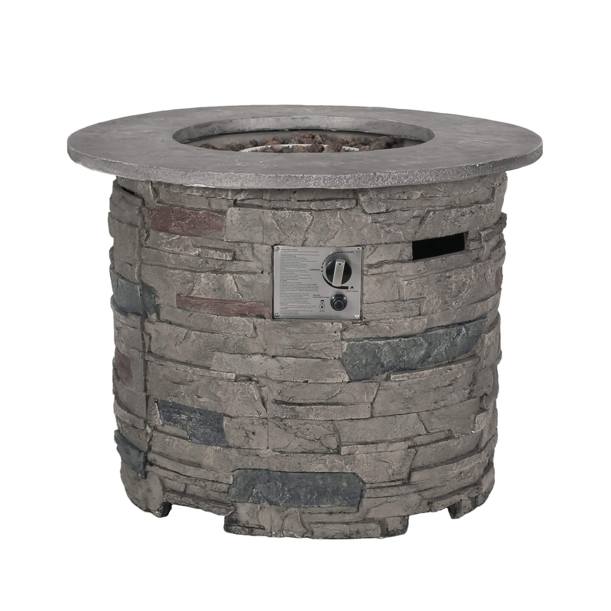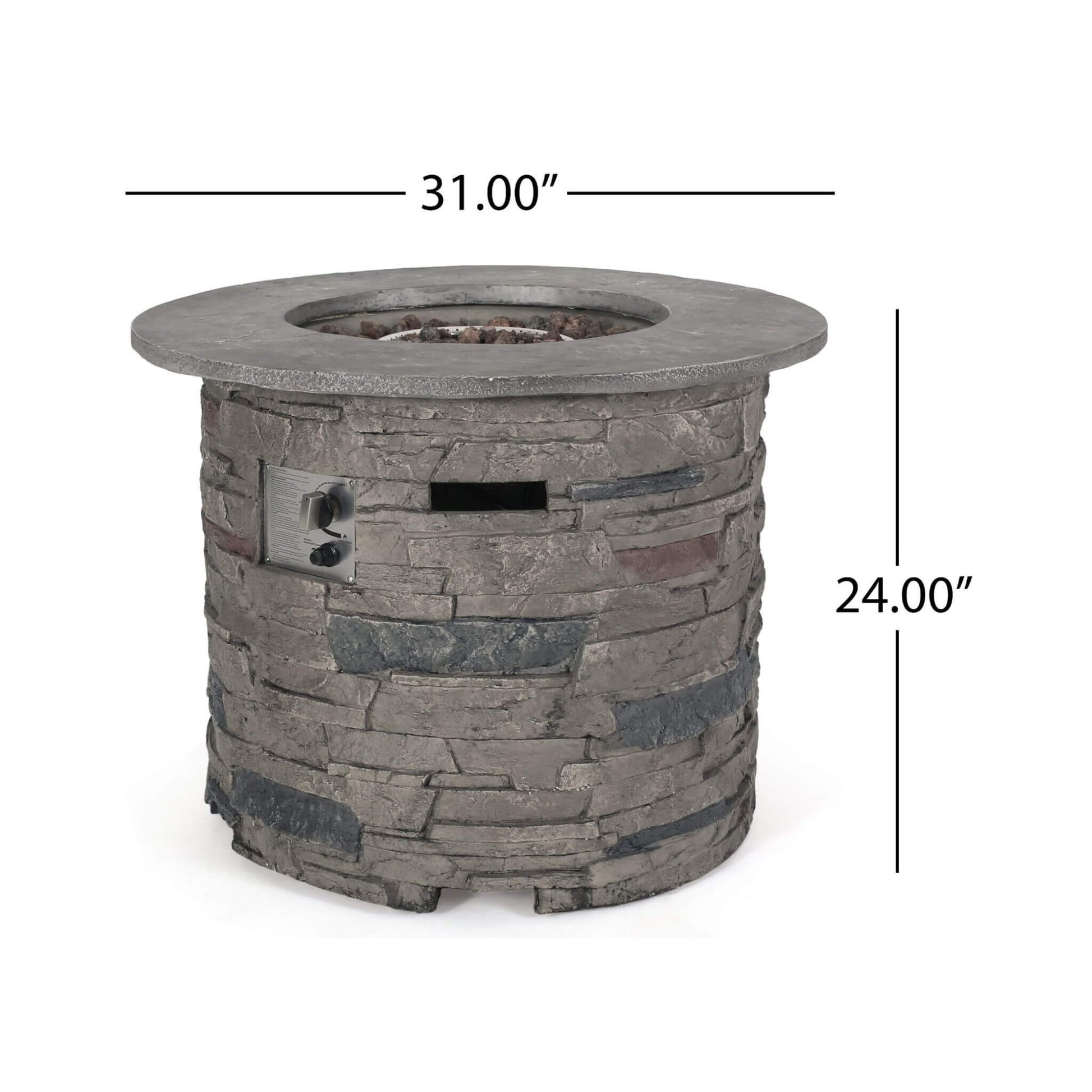 Elevate your outdoor gatherings with the Transitional Concrete Outdoor 32-Inch Round Propane Fire Pit Table! Boasting a sleek gray stone finish and timeless circular design, this fire pit is the perfect centerpiece for patios, gardens, or backyards. Whether you're enjoying marshmallow-roasting evenings or hosting cozy summer nights, its effortless ignitions and customizable flame make creating warmth and ambiance as simple as a single button press.