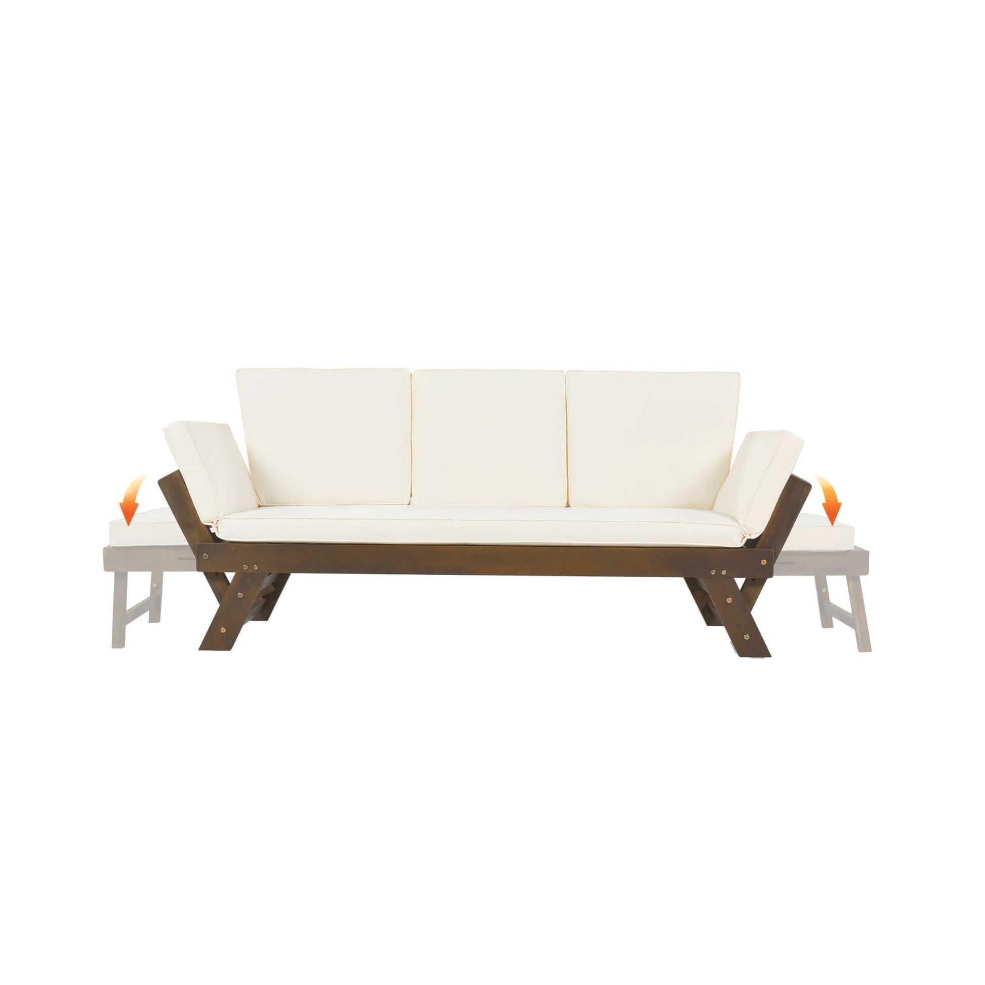 Transform your outdoor space with the Outdoor Adjustable Wooden Patio Daybed Sofa with Cushions—the perfect blend of style, versatility, and durability. Crafted from premium acacia wood, this elegant daybed boasts a natural, fine texture that adds charm to any patio, poolside, or balcony. Designed with adaptability in mind, its adjustable sides allow you to effortlessly transition between a daybed, chaise lounge, or sectional sofa to suit your relaxation needs. The plush, water-resistant cushions and pillows provide unbeatable comfort while maintaining a polished, sophisticated look. Whether you're unwinding solo or entertaining friends, this patio daybed enhances every moment spent outdoors.