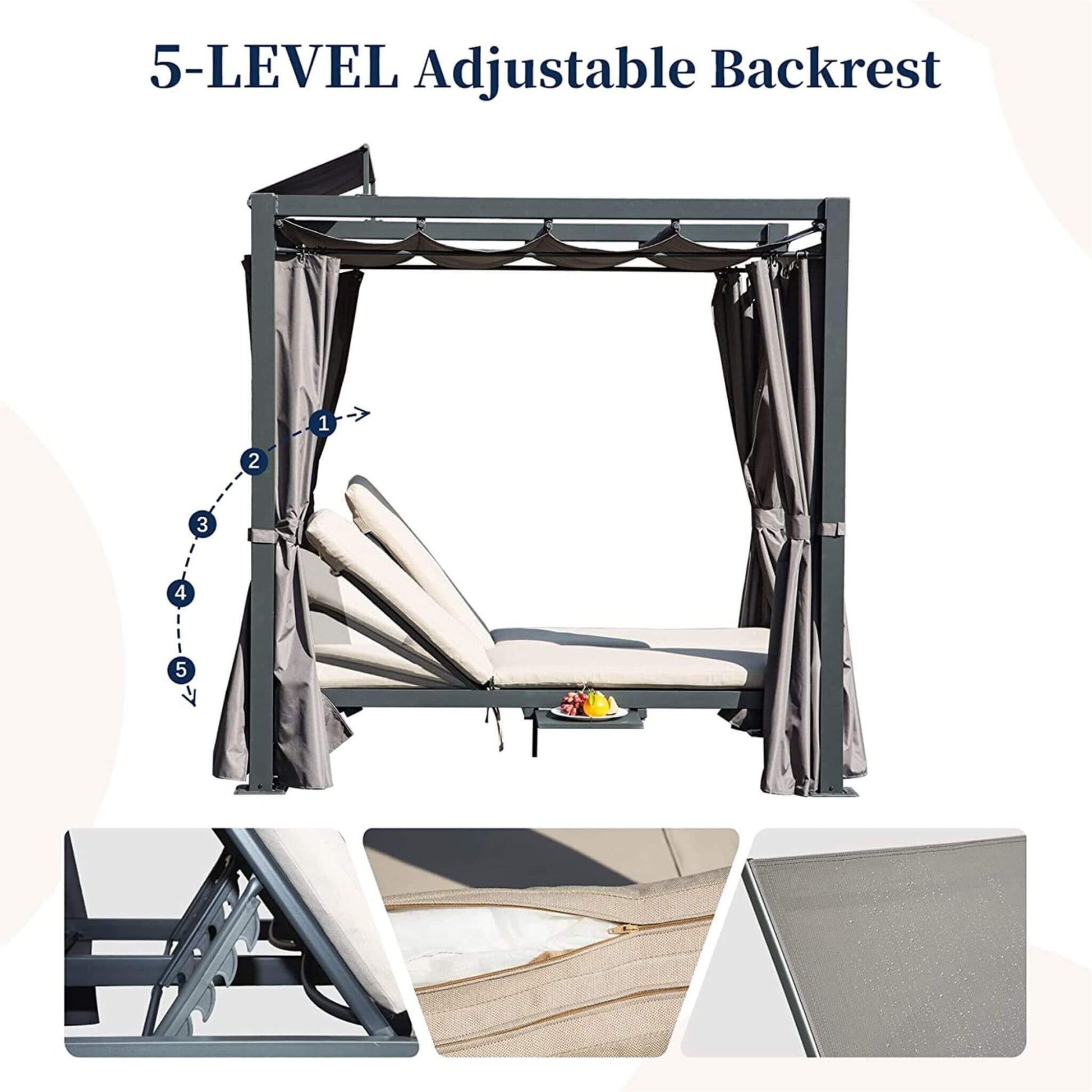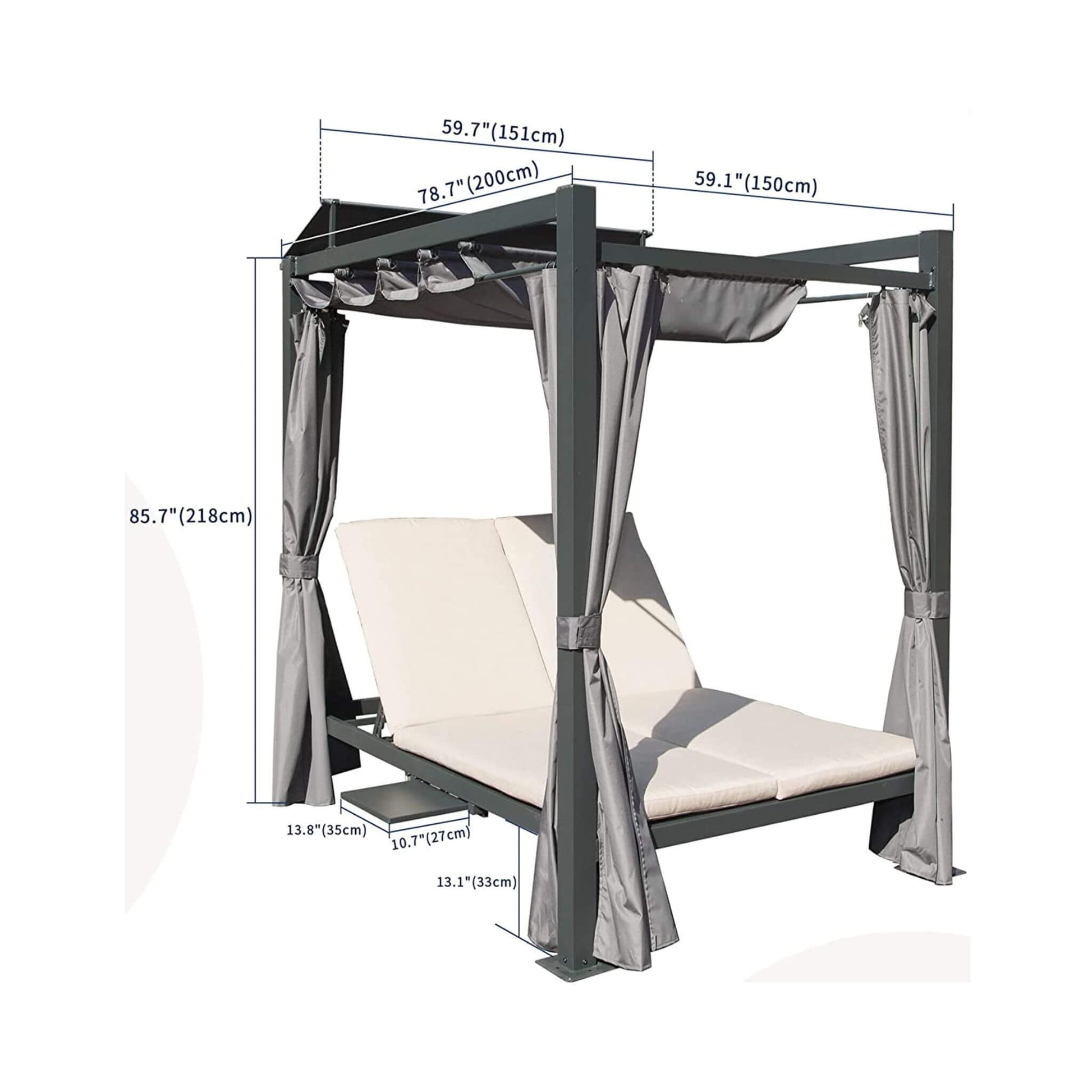 Transform your outdoor space into a luxurious retreat with our Premium Aluminum Outdoor Patio Daybed! This isn't just outdoor furniture; it's a personal oasis designed for ultimate relaxation and sophisticated style. Imagine unwinding with a loved one on a warm, sunny afternoon, cocooned in comfort with breezy curtains providing the perfect amount of shade. Crafted for elegance and built to last, this daybed adds a touch of resort-style living right to your backyard, making every day feel like a vacation.