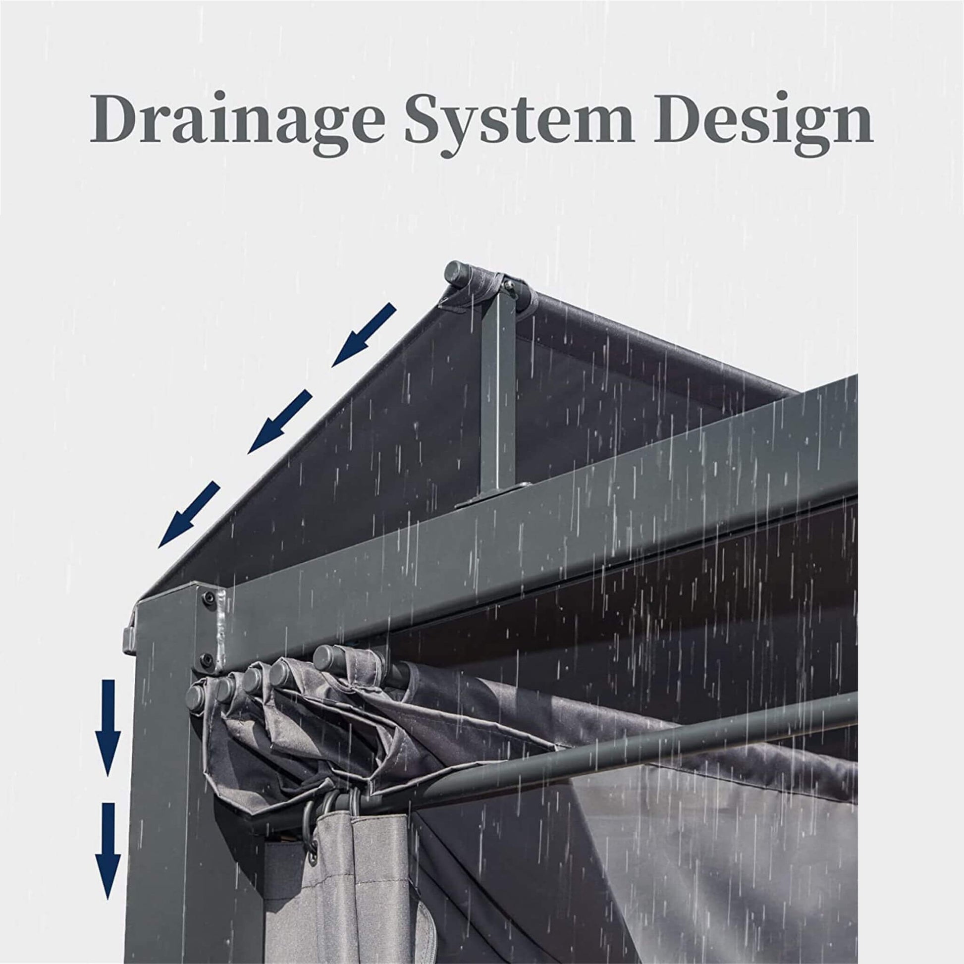 - Included water-resistant curtains offer shade and seclusion, while a clever hidden side table pops up to hold your drinks and snacks, keeping everything you need within arm's reach.