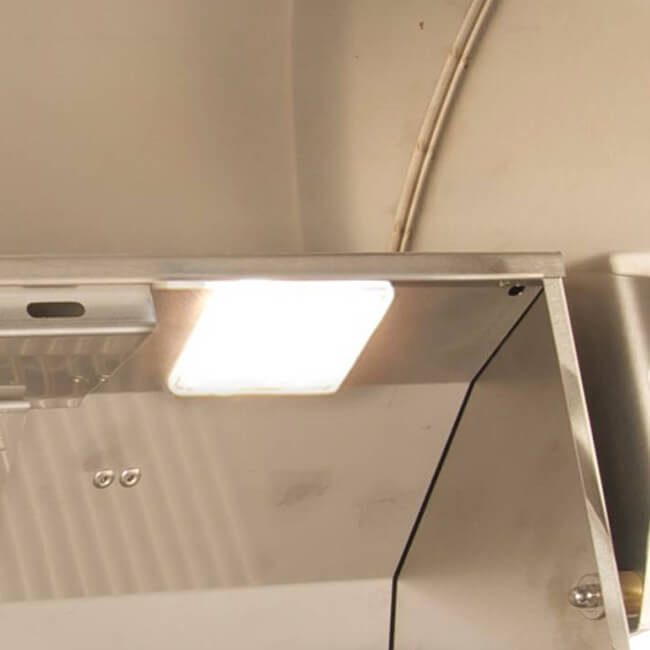 The new “L” series grills feature an electronic push button ignition system that does not require batteries. It also includes interior halogen lights (controlled by a push button located on the right side of the unit) ideal for evening grilling. Requires 120 Volt AC power.