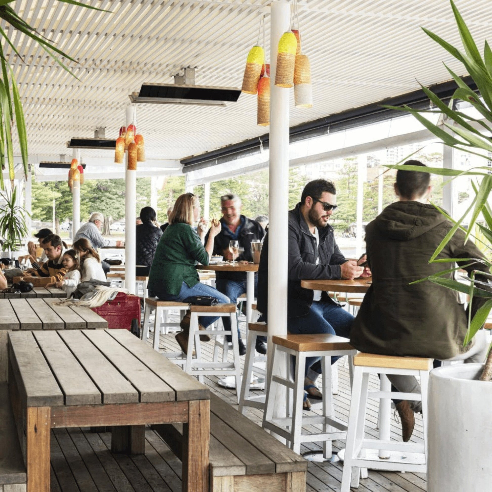 - The sleek, low-profile design ensures that the heater blends effortlessly into your architectural aesthetic rather than dominating the visual landscape of your patio or deck.
