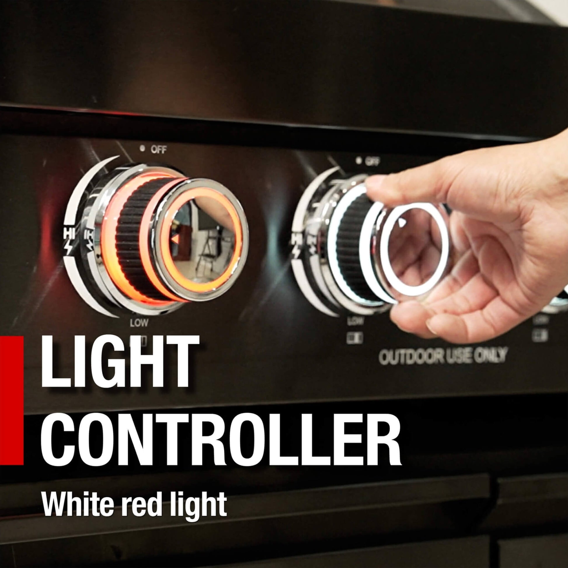 - Cook with precision day or night using two interior halogen cooking lights and eye-catching red/white LED control knob lights that indicate when burners are on. The included 32-inch rotisserie kit expands your cooking options, allowing you to roast succulent, evenly-cooked meats right in your backyard.