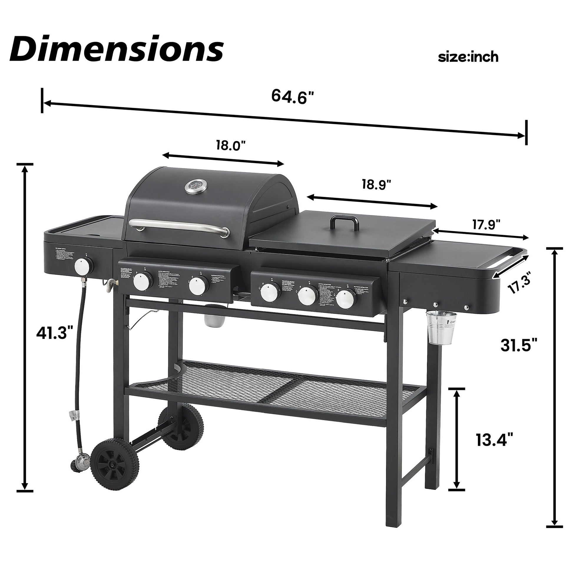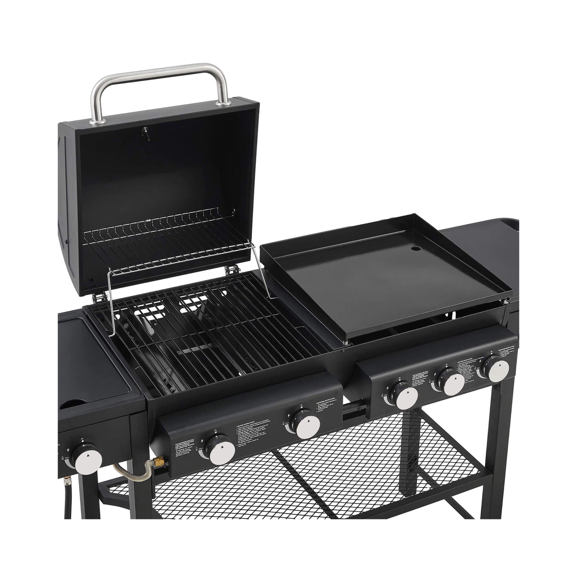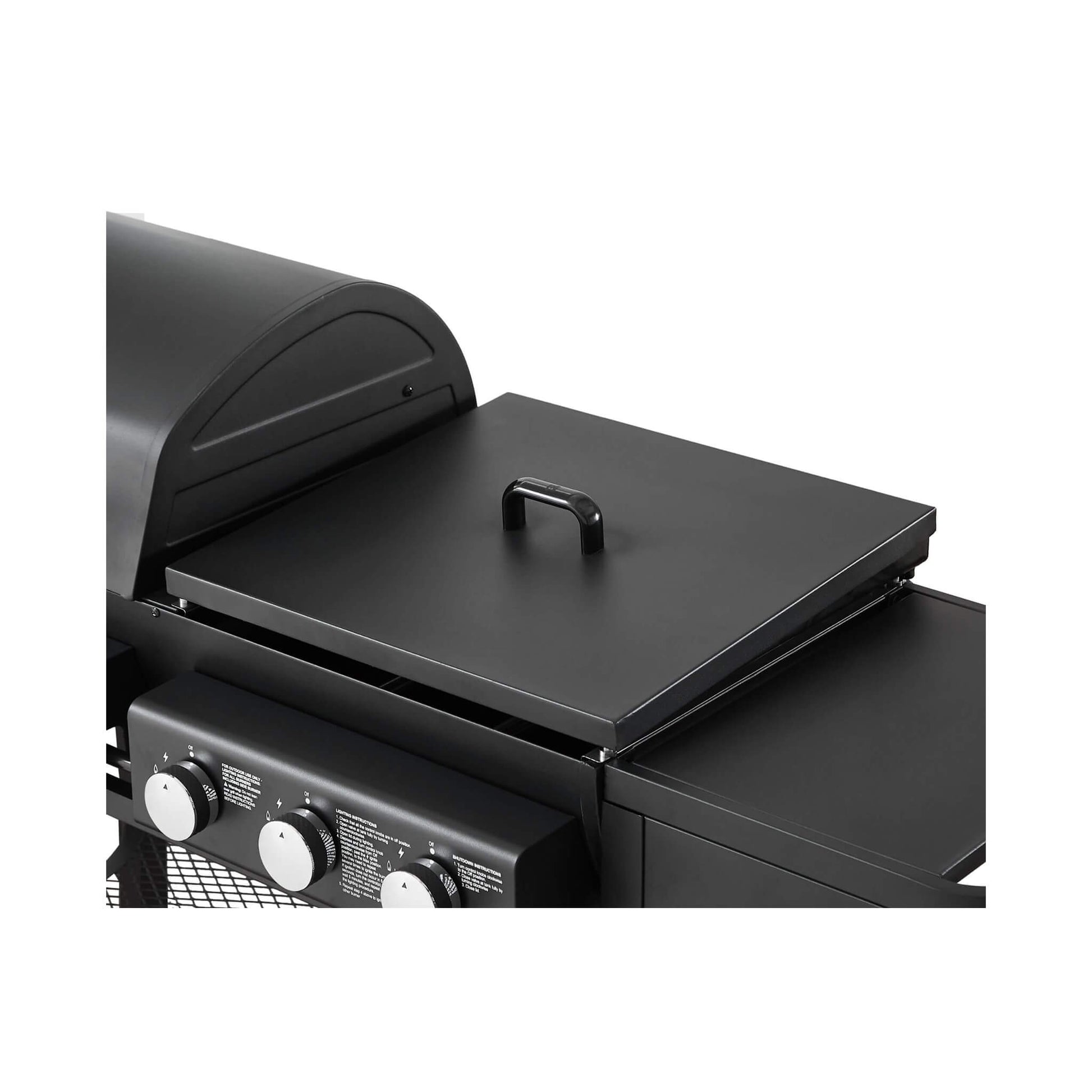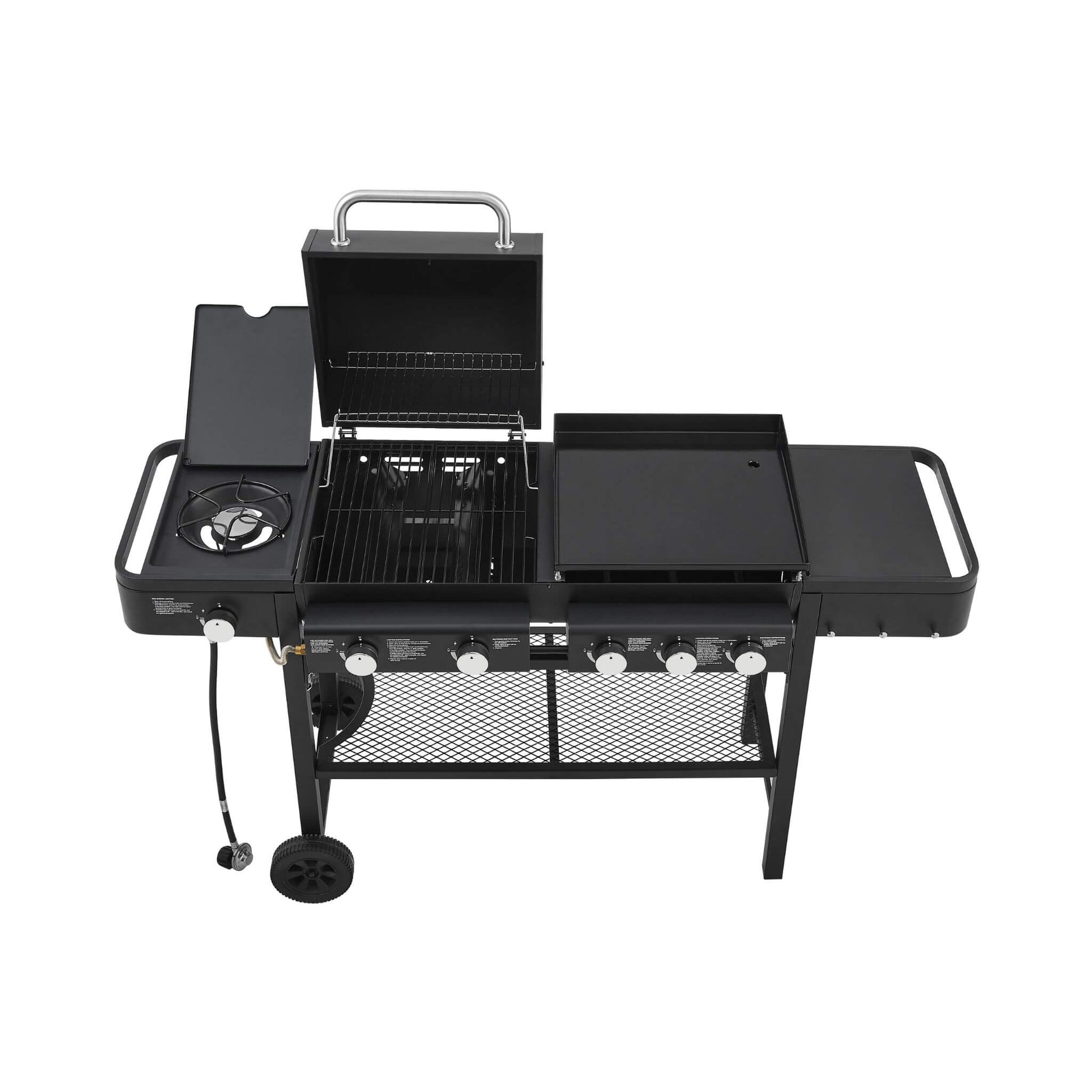 - Seamlessly switch between the gas grill, flat griddle, and side burner. From morning pancakes on the griddle to flame-grilled burgers for lunch and gourmet dinners, this design handles it all.