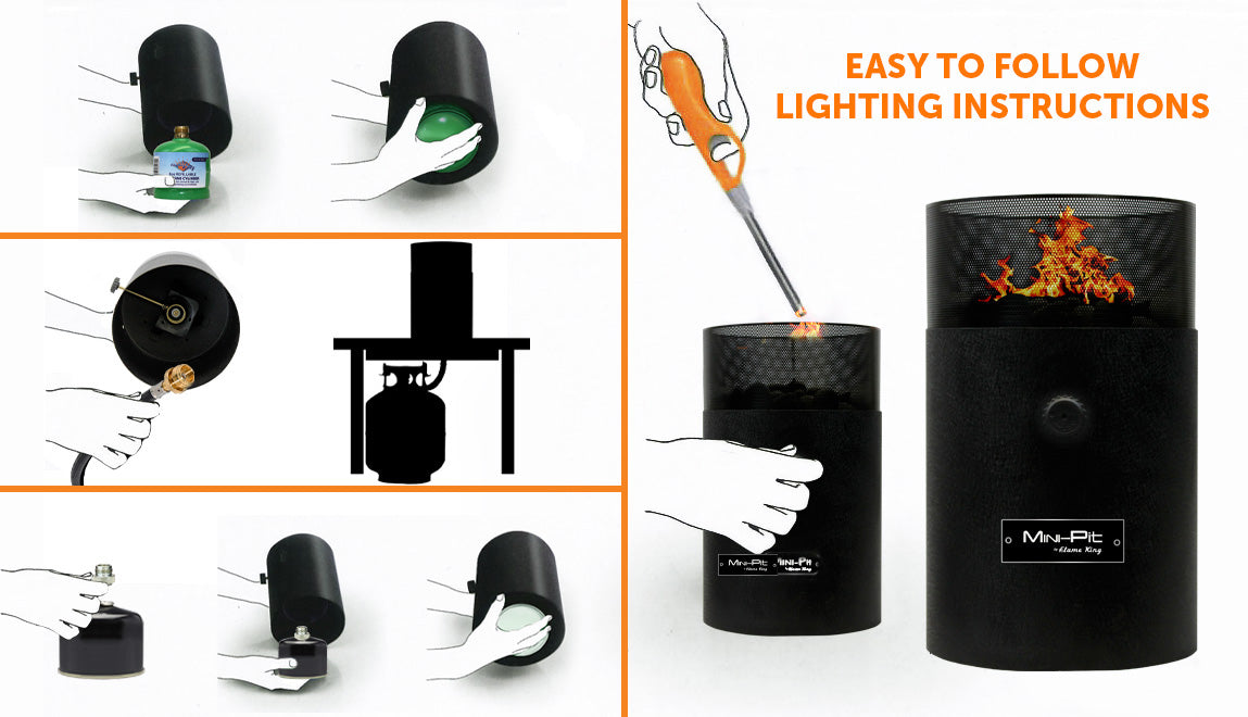 The Flame King Mini Pit is CSA-approved and is safe to use, stylish, and elegant, measuring 8 X 11 inches. Burns clean and smokeless flame, comes with natural rocks to enhance flickering effect, and flame height is adjustable with the control knob. Compatible with both propane and butane (butane to propane adapter included). Butane Gas Canister and Flame King 0.5 Propane Cylinder are sold separately. Can also be attached to a larger tank using a propane hose (sold separately); must be used on a table with umbrella hole when used with propane hose. ONE-YEAR WARRANTY: 1-Year Manufacturer's Defect Warranty.
