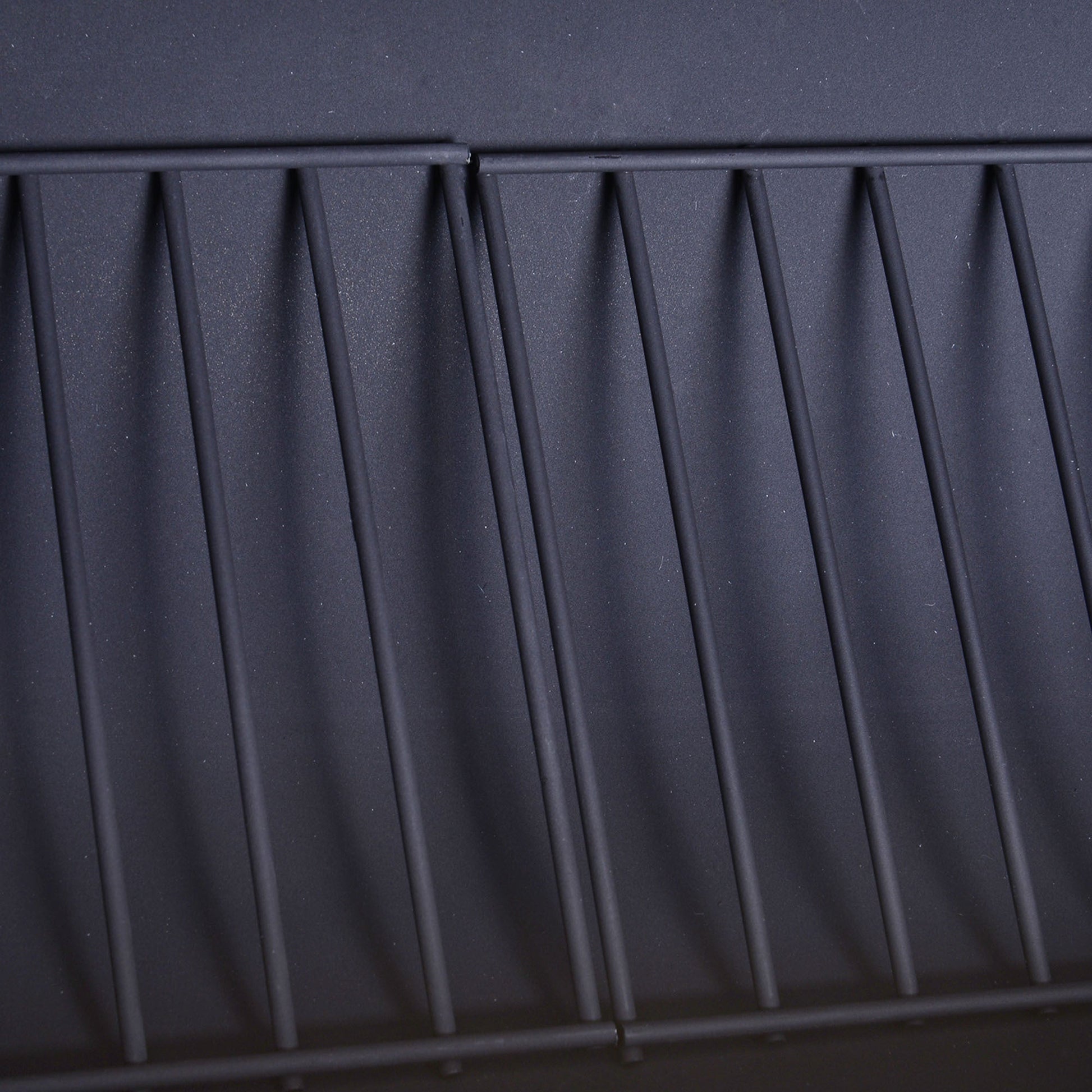 - Ample storage space including two shelves and a metal grating for grilling essentials