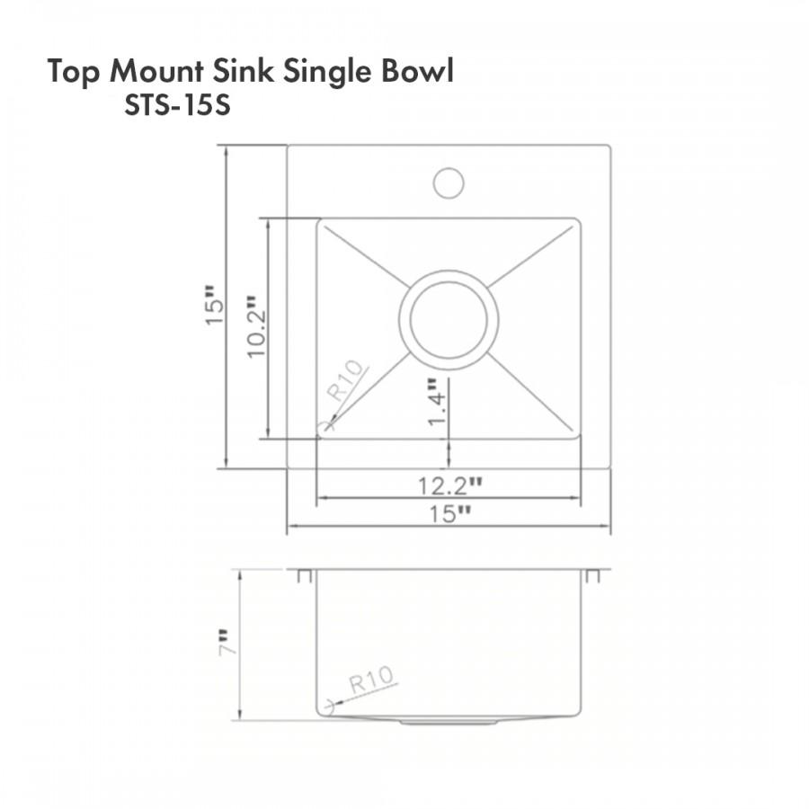 ZLINE 15" Topmount Single Bowl Bar Sink DuraSnow Stainless Steel, STS-15S